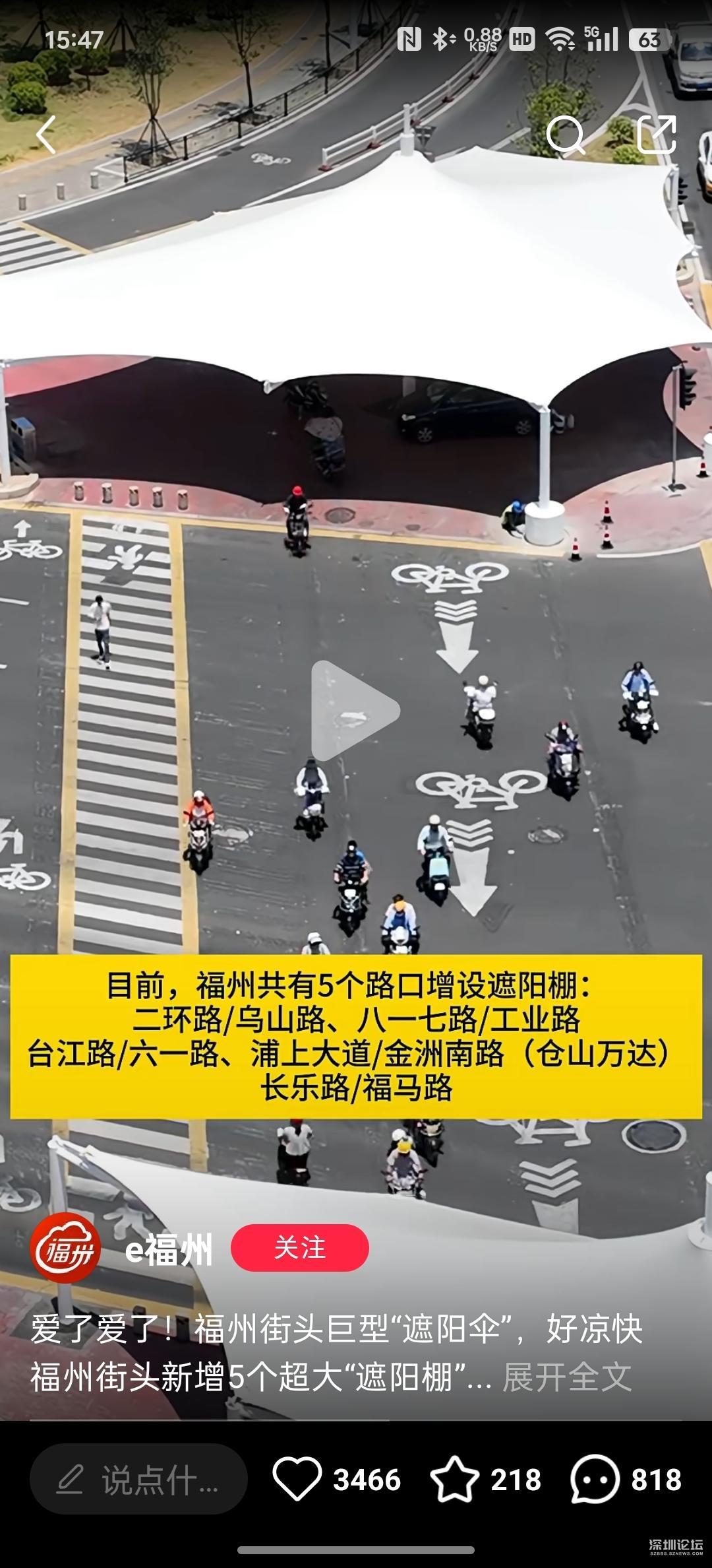 南山大道和滨海大道路口树都没有太晒了,可以学习福州装这个遮阳棚吗?