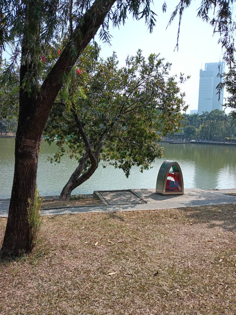 梧桐绿道,疑似有钓鱼人在深圳水库铁丝网内钓鱼